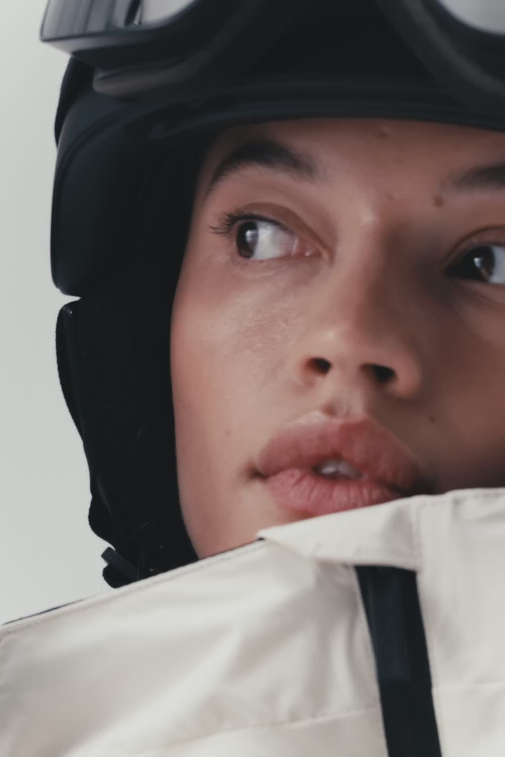 Ski jacket in durable nylon with down insulation and a cropped cut for enhanced mobility. Pairs with Lioro ski pants.