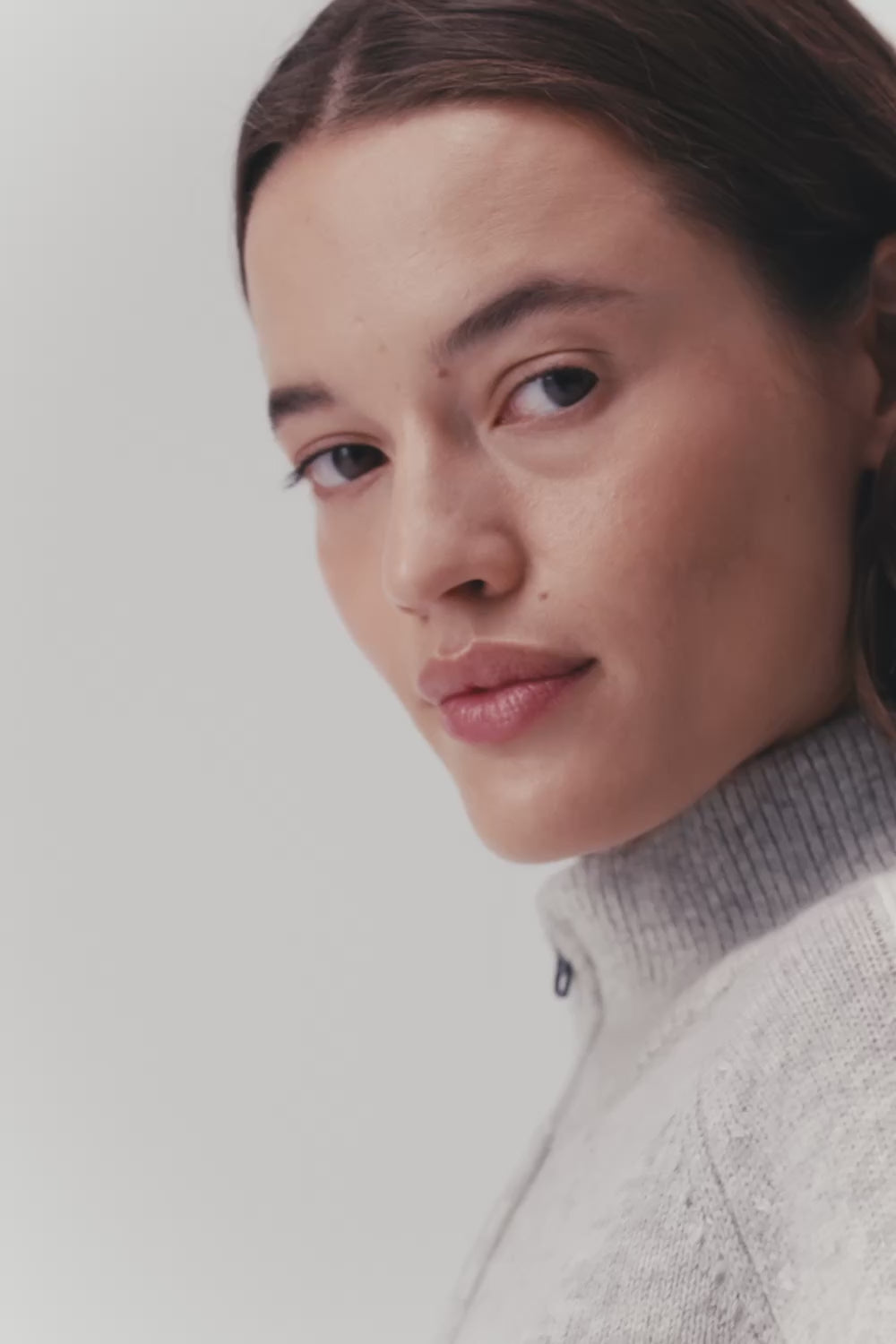 Knitted half-zip jumper in a soft wool–cashmere blend, cut with a slightly cropped silhouette.